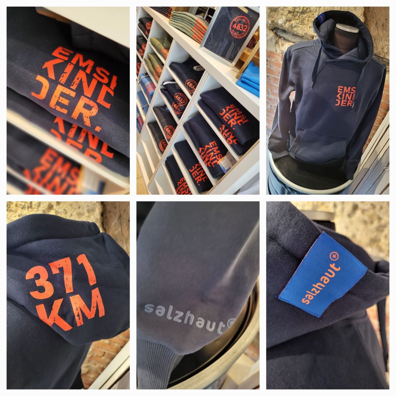 371 Kilometer lang ist die Ems, die direkt hinter unserem Geschäft fließt. Sie entspringt in der Senne und mündet bei Emden in die Nordsee. Aus dieser Verbundenheit heraus haben wir eine Kollektion aus Sweaties und T-Shirts erschaffen - für all diejenigen, die genauso empfinden wie wir - als EMSKINDER!